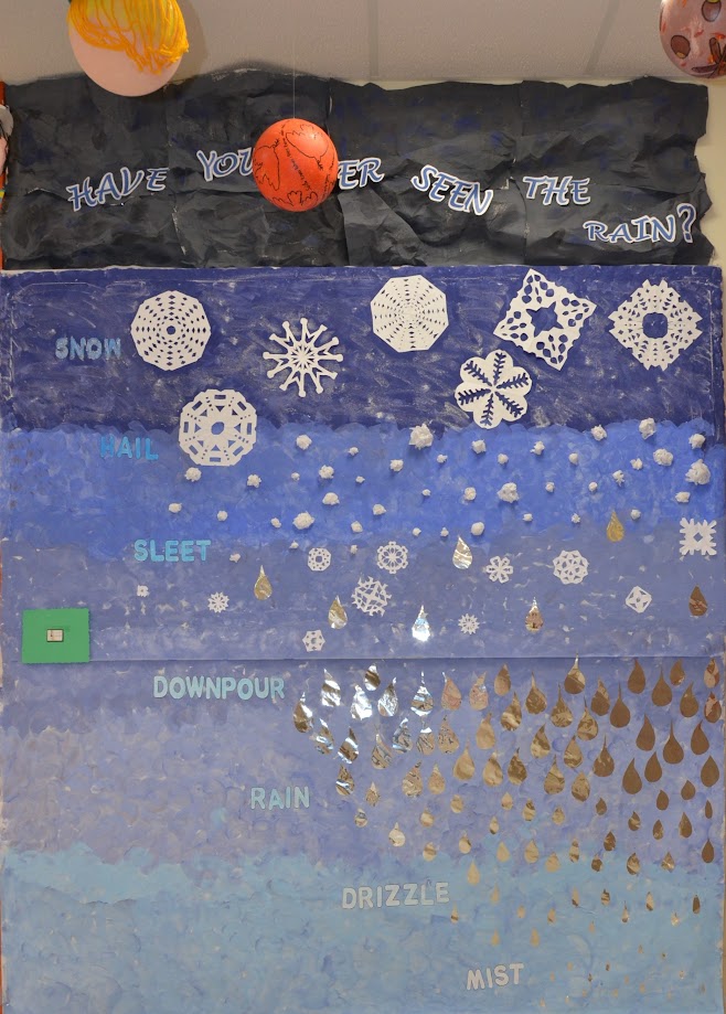 O alumnado de 6º de Ed. Primaria elaborou un gran mural metereolóxico no recanto de metetereoloxía no que se traballou o vocabulario en inglés.